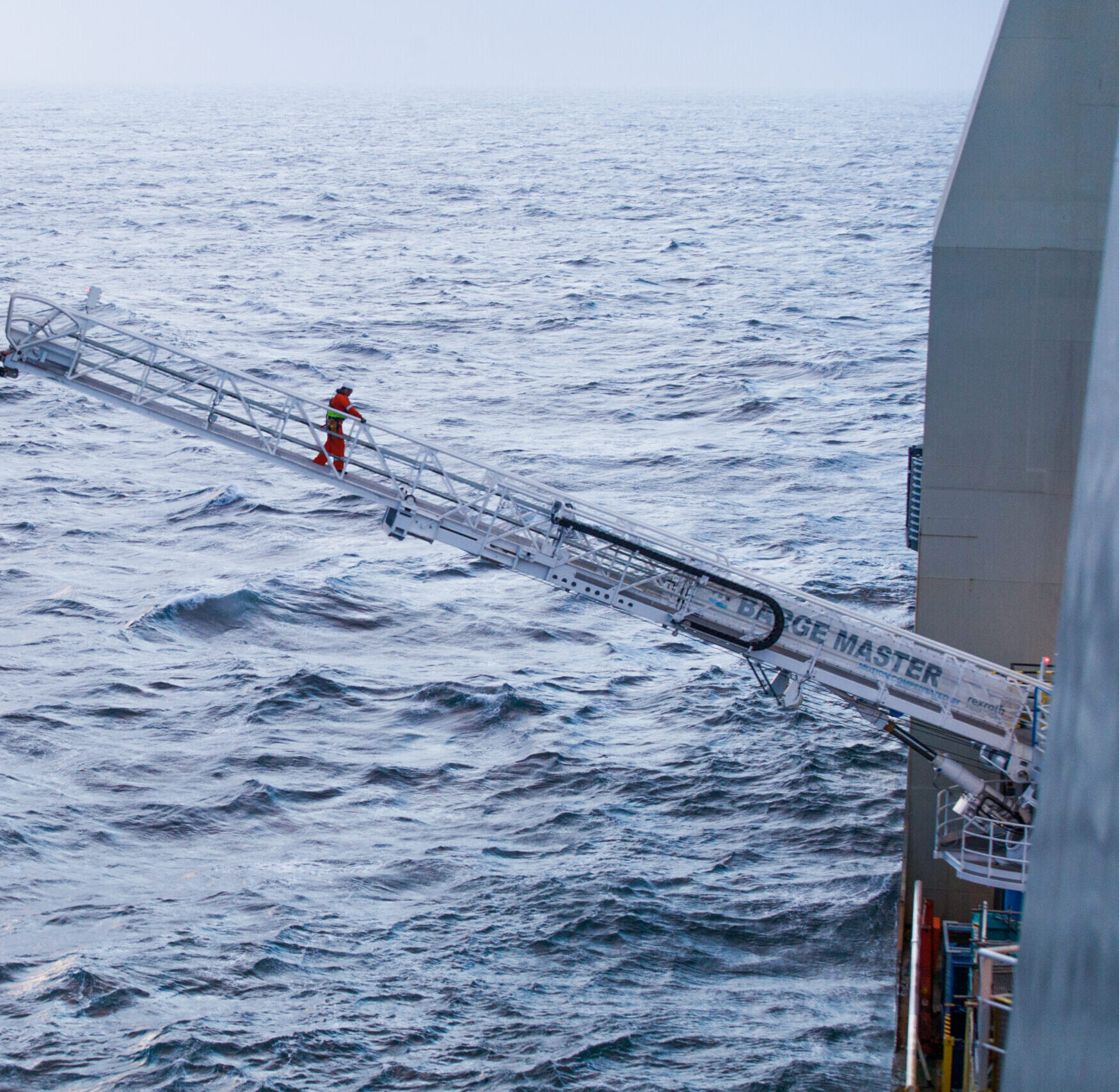 More safety comes with Bosch Rexroth’s new autonomous landing solution. Through a combination of sophisticated radar technology, cameras and sensors, the system automatically attaches the landing to the required site without the need for manual input. This means that the operation is consistent and reliable, regardless of weather and ocean conditions. Once connected, the landing utilizes the usual motion compensation which works alongside the vessel’s dynamic positioning system to ensure a safe, steady connection between the ship and the platform.