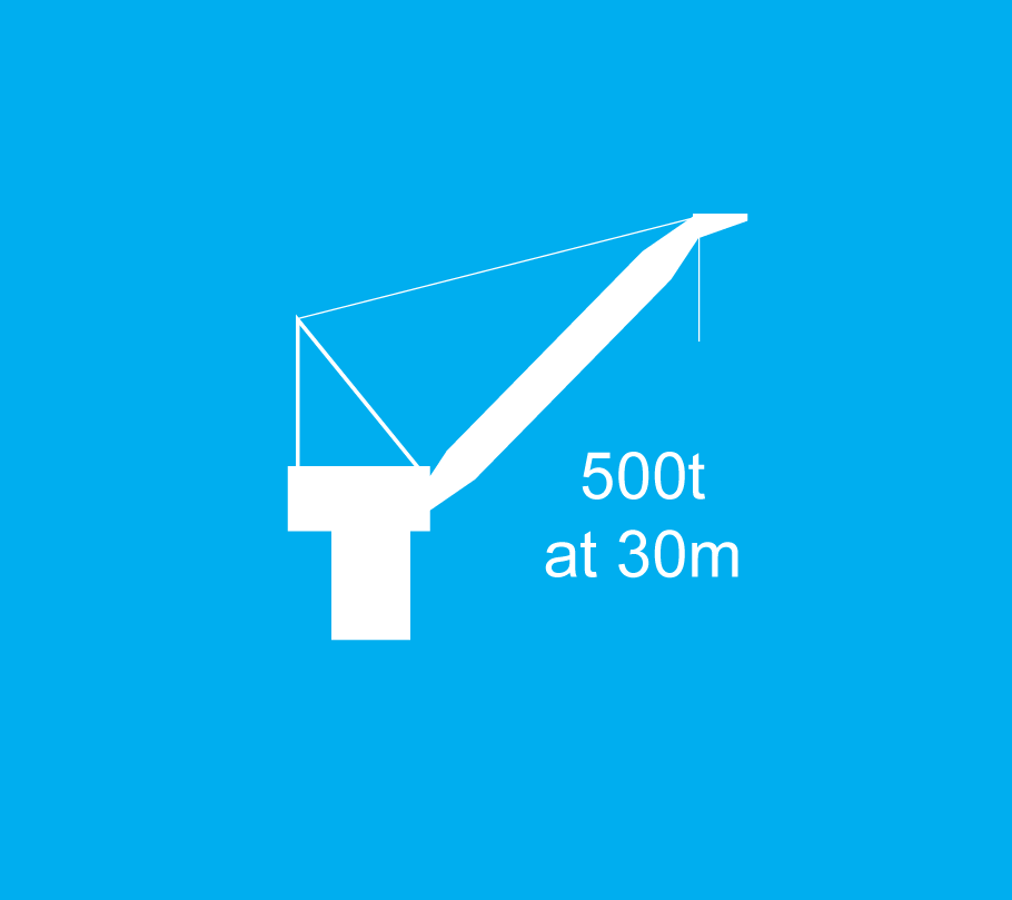 This solution allows for lifts of up to 500 tons at a 30m radius whilst compensating for significant wave heights up to 2.5 meters.